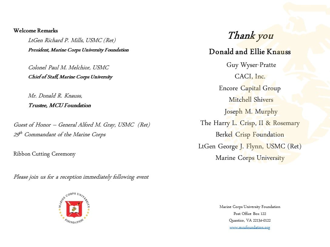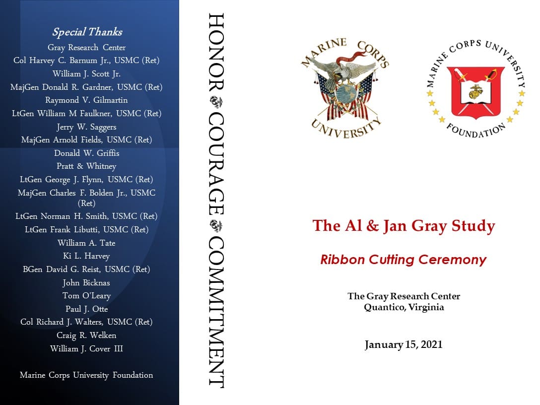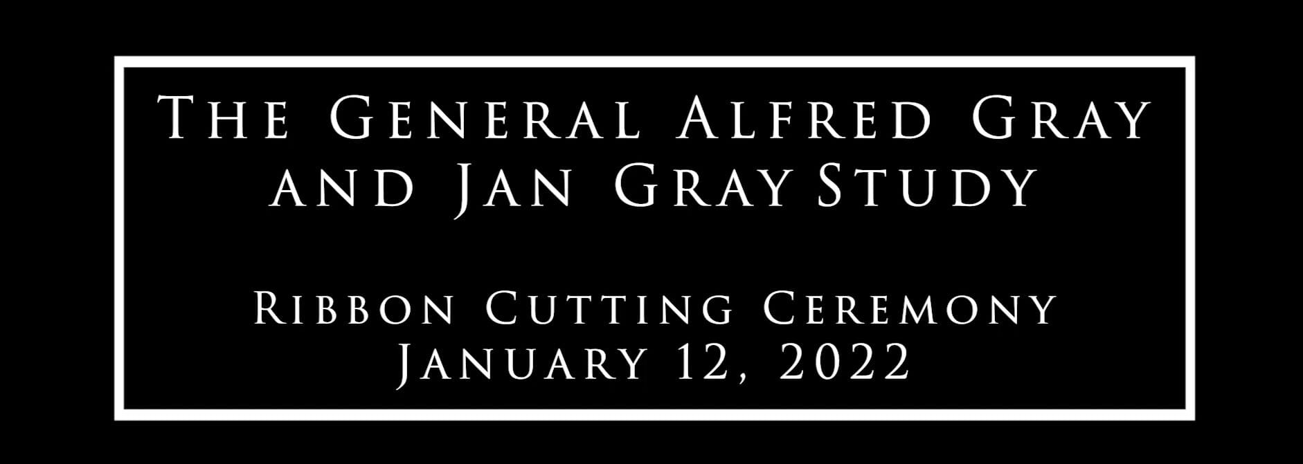 On January 12, 2022 General Al Gray formally opened the Al and Jan Gray Study with a Ribbon Cutting Ceremony. This room was sponsored by MCUF and we want to thank the many donors who helped make this possible!