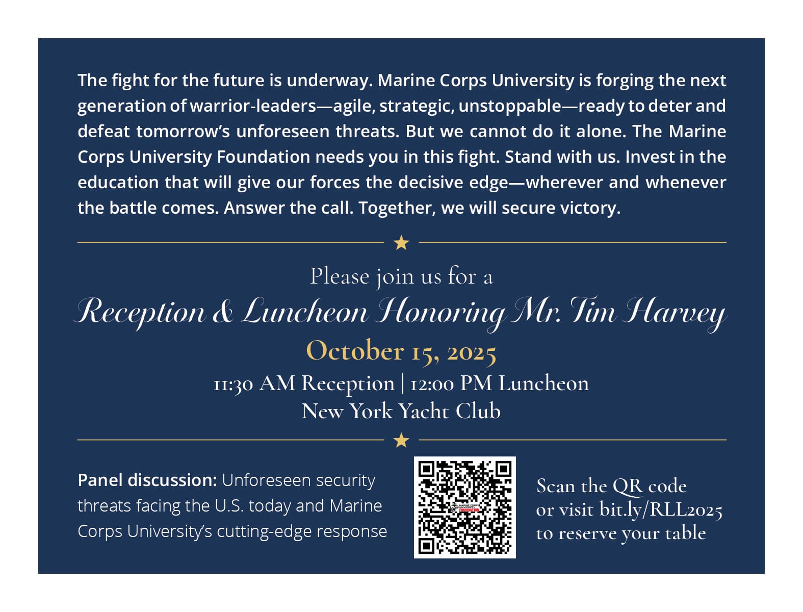 Come be a part of this exceptional Luncheon and support our Marines and their Professional Military Education at home and abroad!