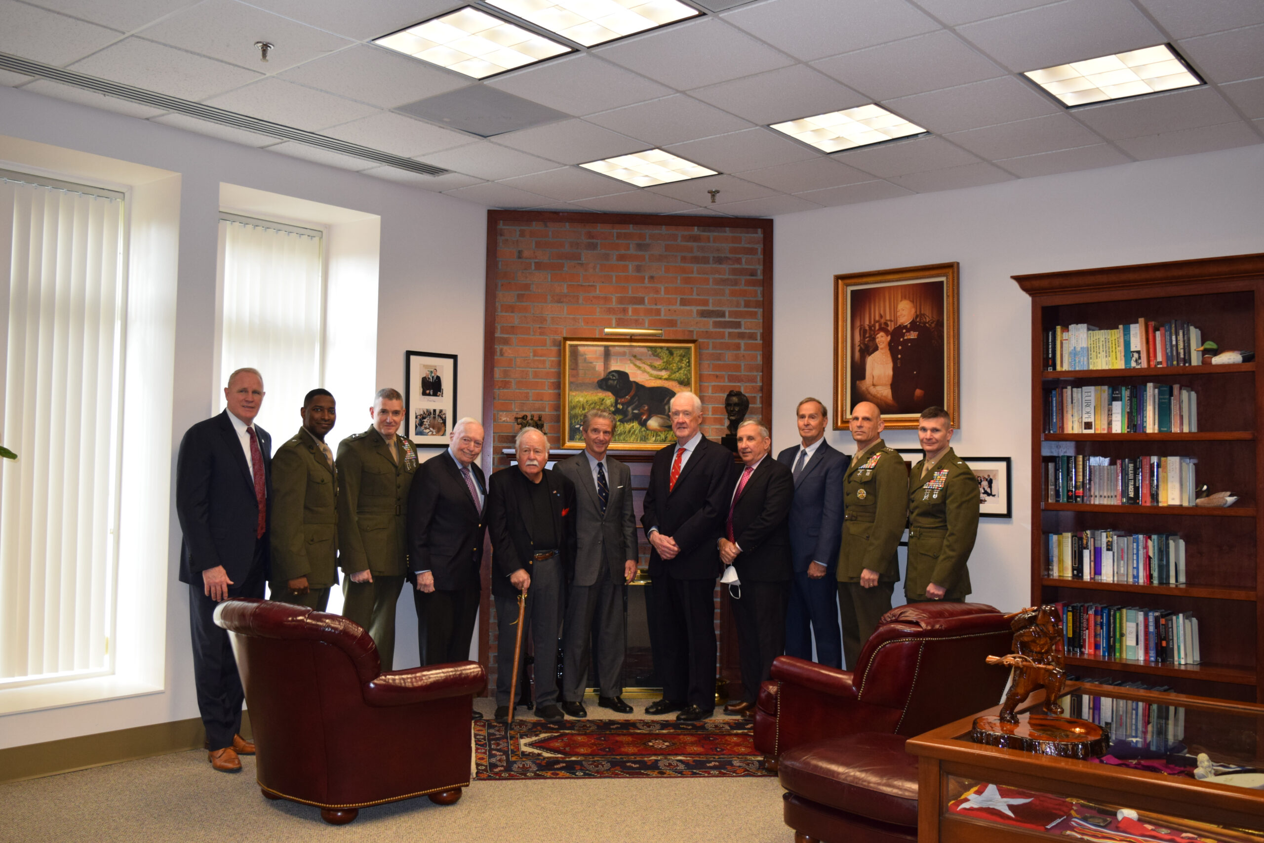 On January 15, 2022, members of Marine Corps Base Quantico, Headquarters Marine Corps, and MCU Foundation cut the ribbon during the opening of the General Alfred and Jan Gray Study Room at the Gray Research Center, Marine Corps Base Quantico, Virginia. General Gray, our 29th Commandant and the founder of the University, donated his extensive personal library to the research center, which is housed in a reading room modeled after his personal study. The room is a haven for students to learn about and discuss warfighting.